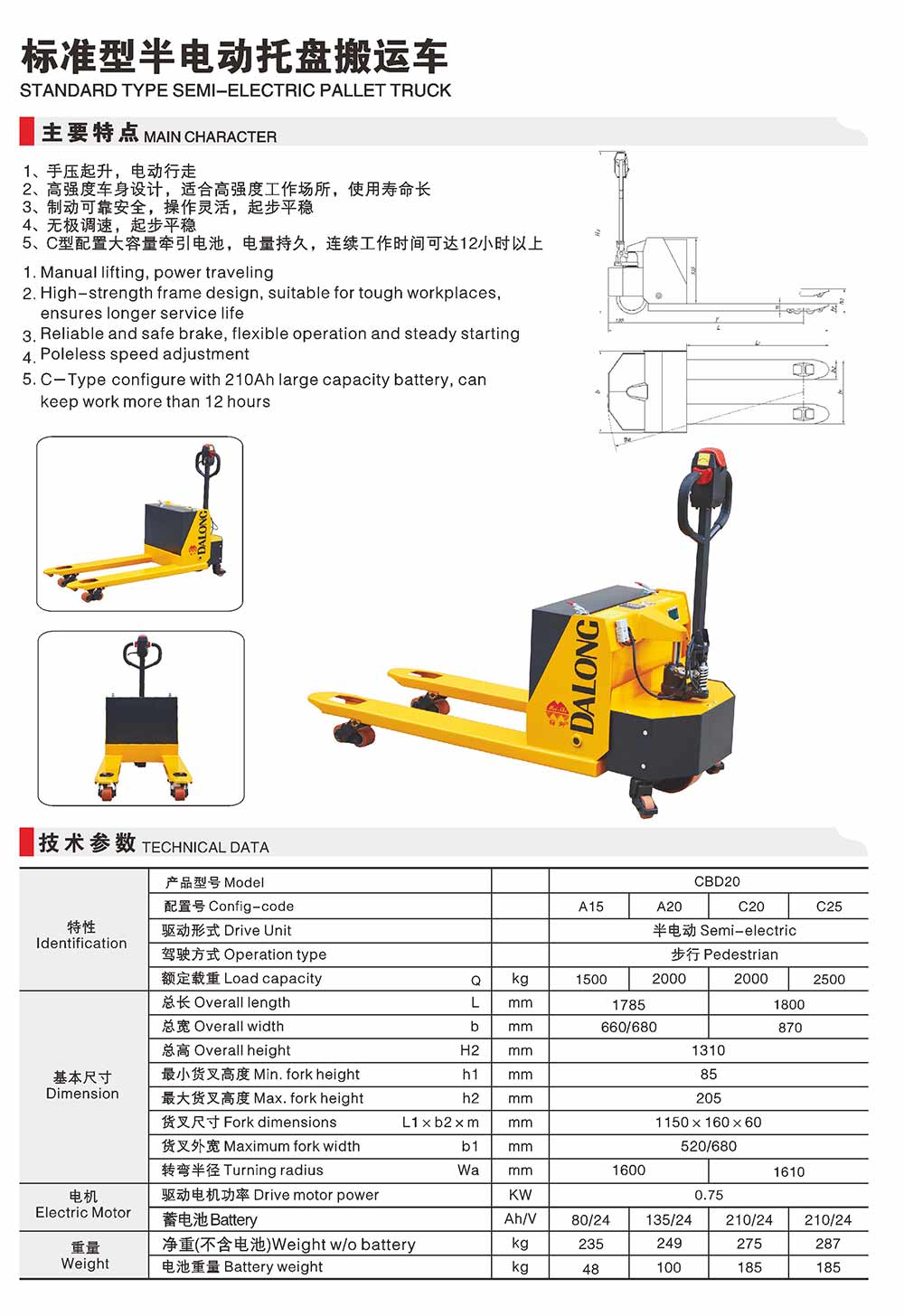 CBDA標(biāo)準(zhǔn)型半電動托盤搬運(yùn)車