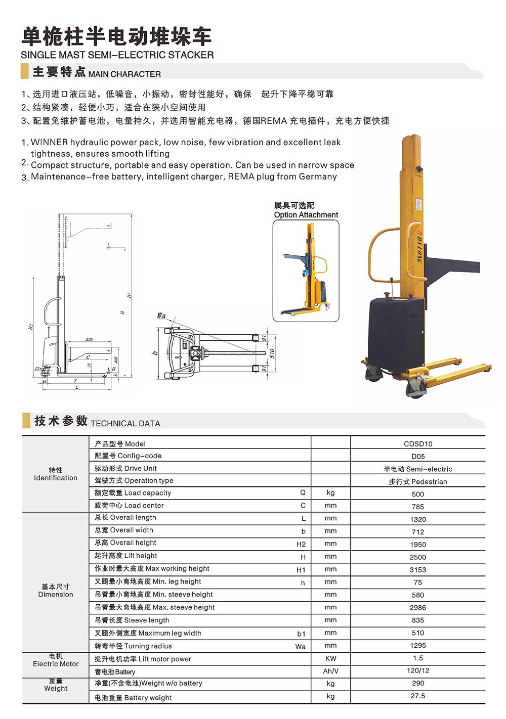 CDSDD半電動(dòng)堆垛車(單桅柱)