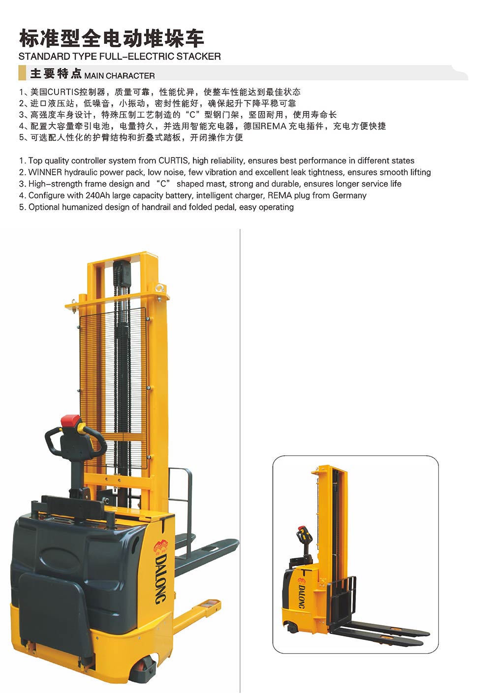 無(wú)錫大隆電工機(jī)械有限公司主營(yíng)電動(dòng)叉車(chē),手動(dòng)搬運(yùn)車(chē),電動(dòng)堆垛車(chē),電動(dòng)搬運(yùn)車(chē)等,規(guī)格達(dá)上百種,多次通過(guò)國(guó)家質(zhì)量技術(shù)監(jiān)督部門(mén)的質(zhì)量鑒定,信譽(yù)高,值得選購(gòu)!