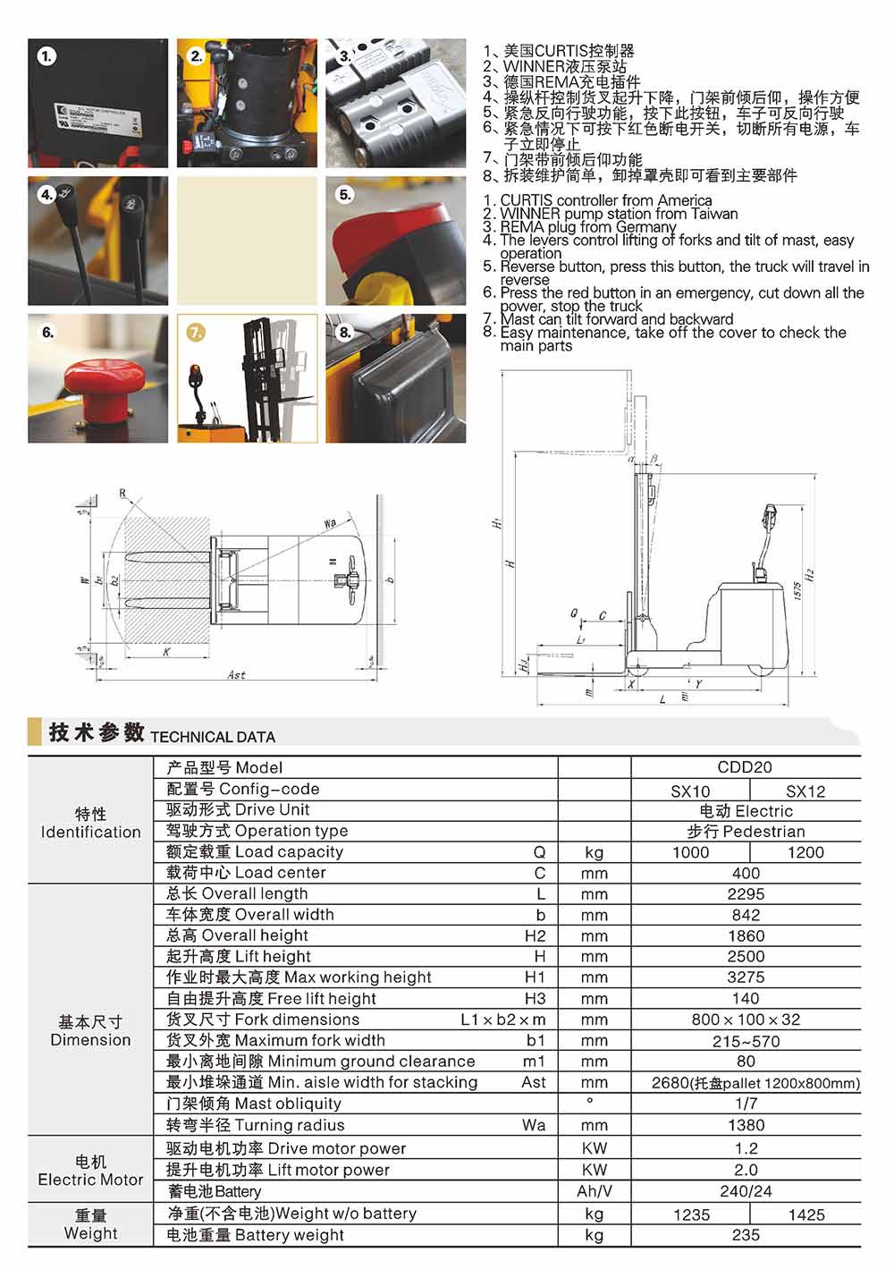 CDDSX平衡重電動堆垛車 (步行式或站駕式)