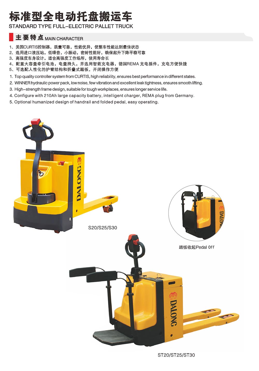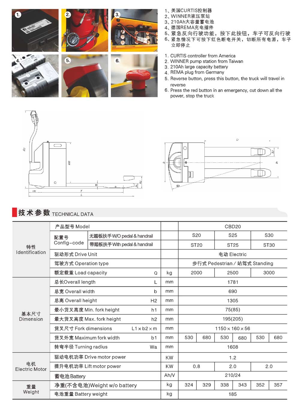 電動搬運車驅動輪、負載輪、平衡輪采用特殊工藝的橡膠/聚氨脂輪,大大延長使用奉命;超小車身設計,可應用于各種狹小通道;運行速度快,承載能力強,極大提高效率;原裝進口無級調速電腦系統(tǒng),大容量牽引電池 多功能手柄:操作者可通過電子鎖啟動車輛。輕松對行駛速度加以控制,如需加速只需轉動手柄上的加速開關,旋轉越大,車速越快。
