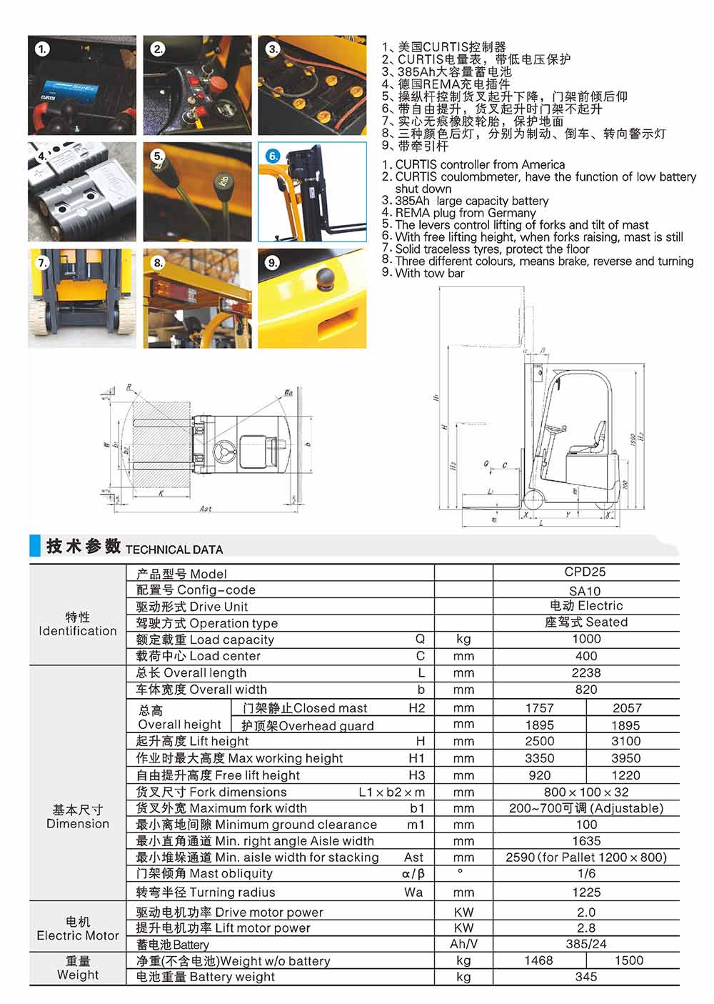CPDSA三支點(diǎn)電動(dòng)叉車1T