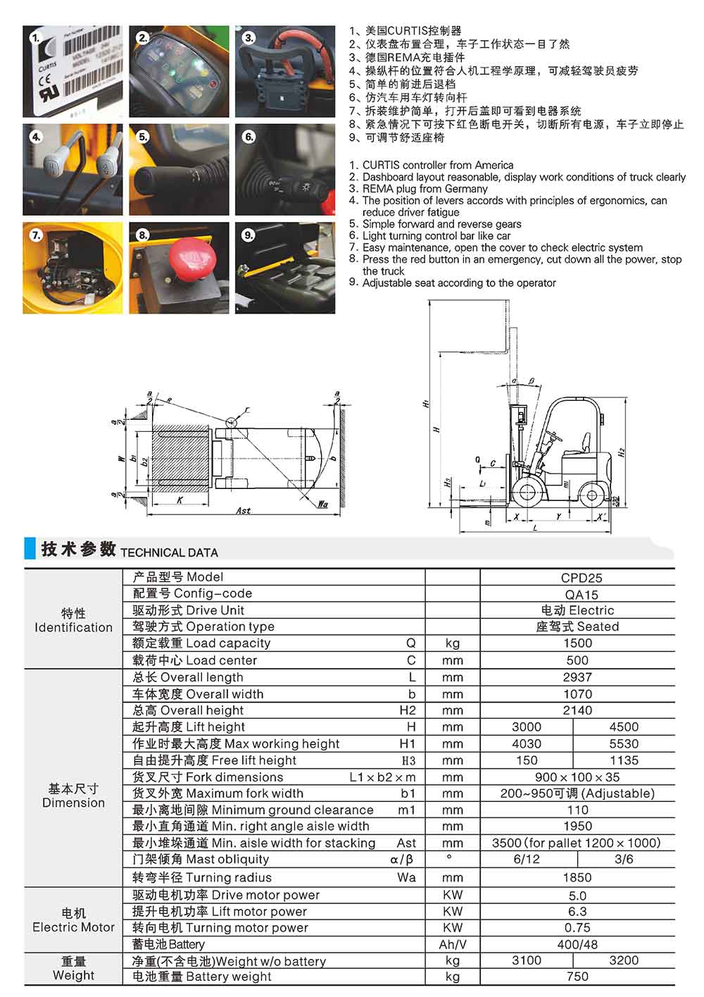 CPD25-QA15四支點(diǎn)平衡重電動(dòng)叉車(chē)